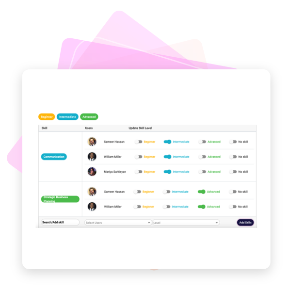 Validate skills demonstrated and competencies required during KPI or Task completion.